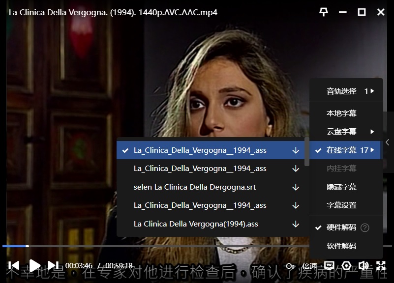 字幕:迅雷云播可在线匹配到“简体中文”,如下:
