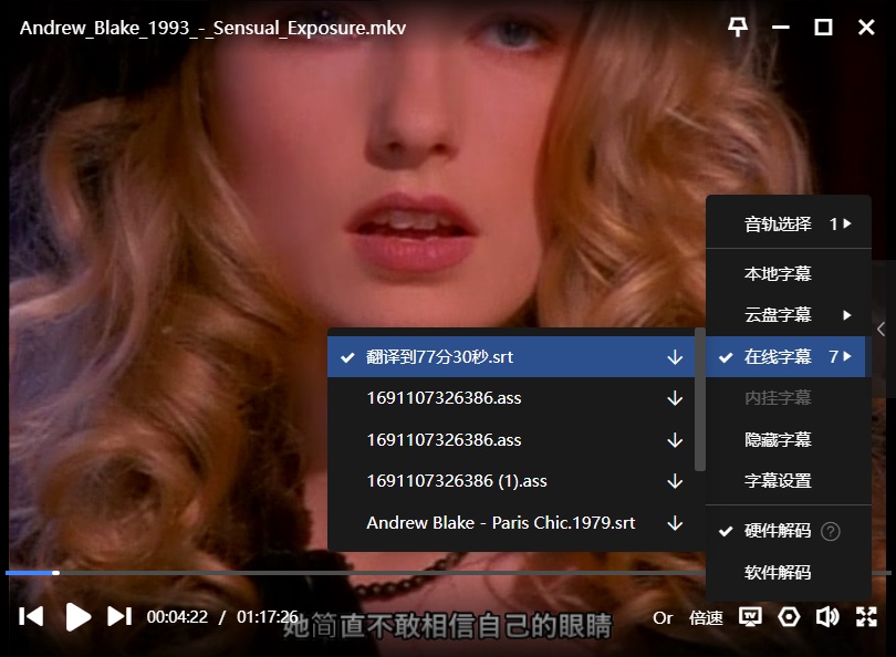 字幕:迅雷云播可在线匹配到“简体中文”,如下: