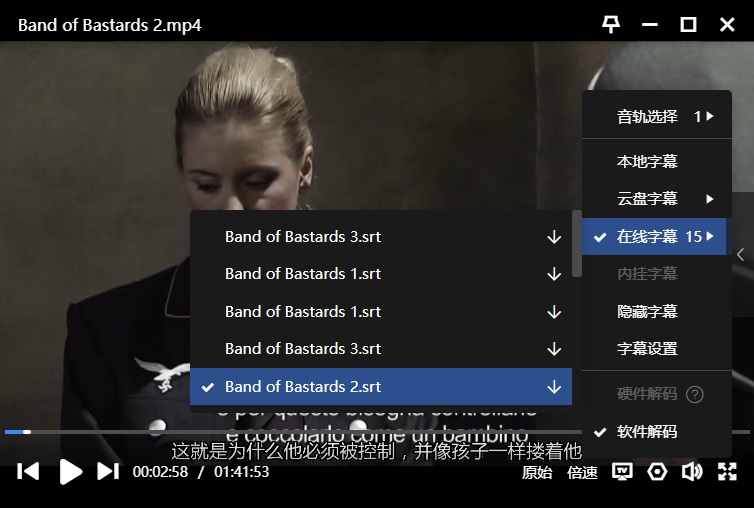字幕:迅雷云播可在线匹配到“意上中下”,如下: