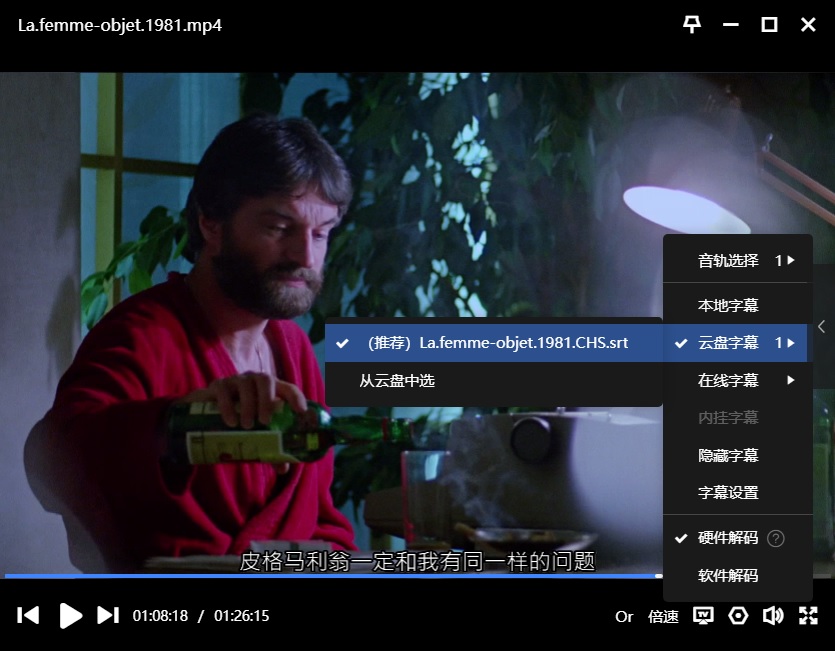 字幕:外挂 srt 简体中文,迅雷云播可直接选用,如下: