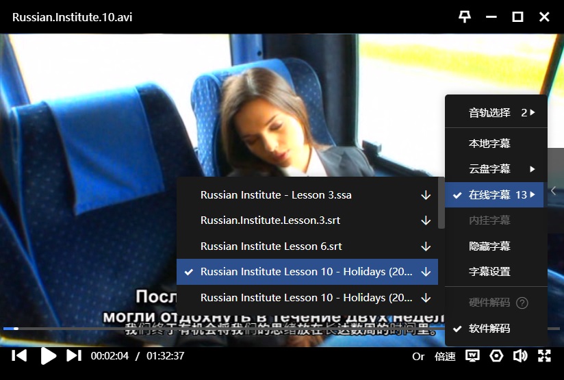 字幕:迅雷云播可在线匹配到“俄上中下”,如下: