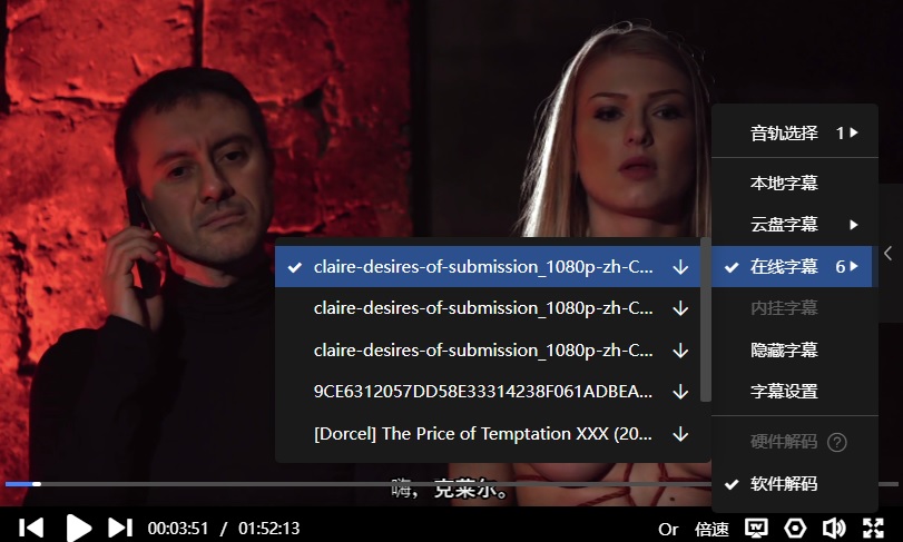 字幕:迅雷云播可在线匹配到“简体中文”,如下: