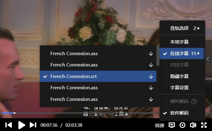 字幕:迅雷云播可在线匹配到“简体中文”,如下: