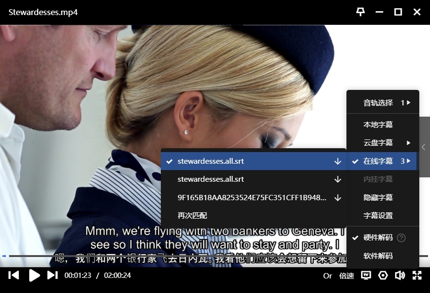 字幕:迅雷云播可在线匹配到“英上中下”,如下: