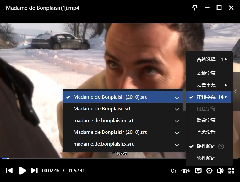 字幕:迅雷云播可在线匹配到“简体中文”,如下: