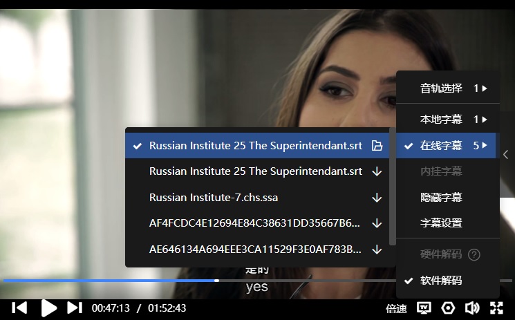 字幕:迅雷云播可在线匹配到“中上英下”,如下: