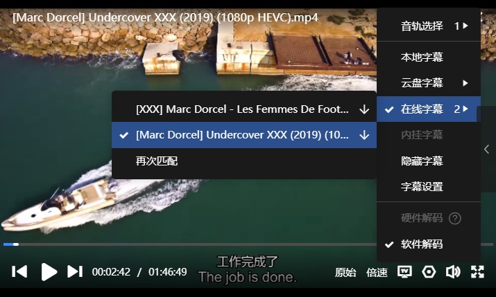 字幕:迅雷云播可在线匹配到“中上英下”,如下: