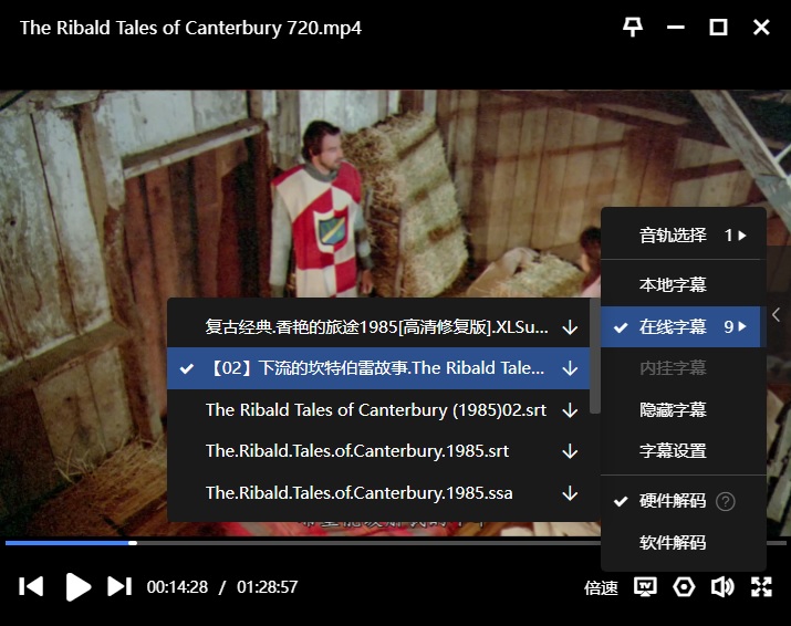 字幕:迅雷云播可在线匹配到“简体中文”,如下: