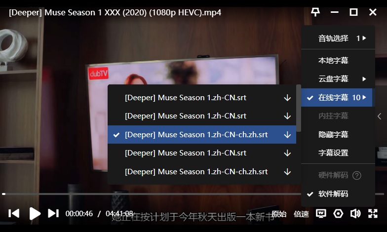 字幕:迅雷云播可在线匹配到“简体中文”,如下: