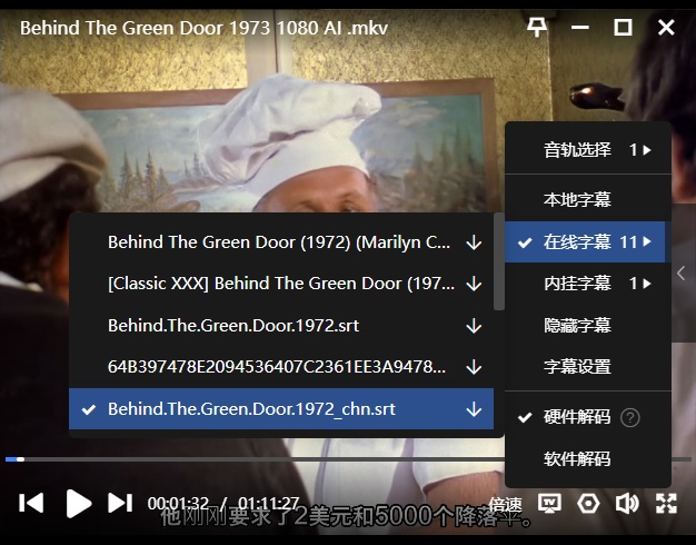 字幕:迅雷云播可在线匹配到“简体中文”,如下: