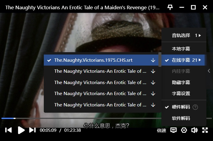 字幕:迅雷云播可在线匹配到“简体中文”,如下: