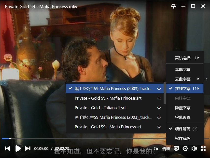 字幕:迅雷云播可在线匹配到“简体中文”,如下: