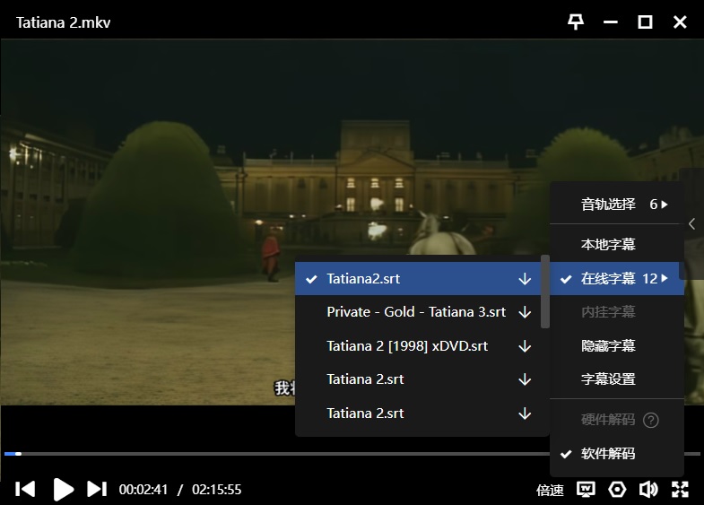 字幕:迅雷云播可在线匹配到“简体中文”,如下: