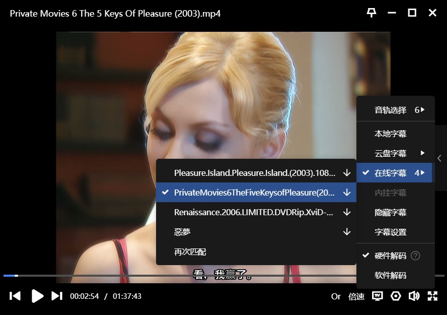 字幕:迅雷云播可在线匹配到“简体中文”,如下: