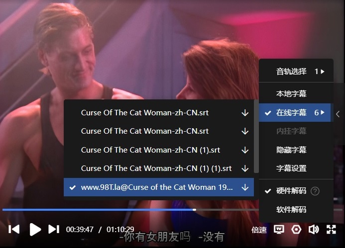 字幕:迅雷云播可在线匹配到“简体中文”,如下: