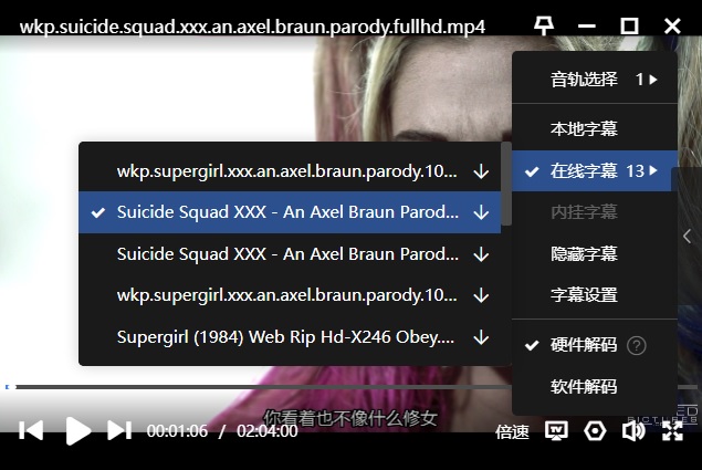 字幕:迅雷云播可在线匹配到“中上英下”,如下: