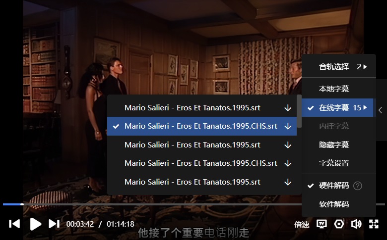 字幕:迅雷云播可在线匹配到“简体中文”,如下: